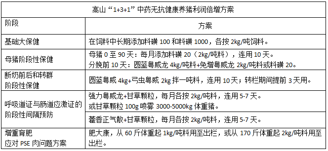 附:高山“1+3+1”中藥無抗健康養殖利潤倍增方案