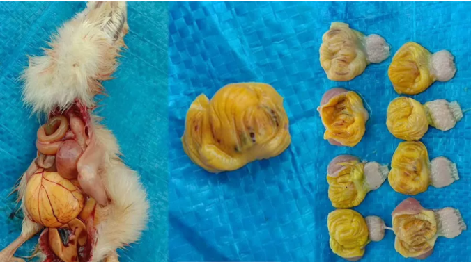三、“0日齡”雛雞也會出現肌腺胃炎,你相信嗎?肌腺胃炎是一種以雞生長遲滯、消瘦、大小不均、腺胃腫大、腺胃乳頭糜爛等為主要特征的消化系統疾?。ǔ省八拇谩保??!?日齡”雛雞更需要呵護與關注。肌腺胃炎初期無明顯臨床癥狀,采食量“正常”,繼而表現“過料”,單純的肌腺胃炎不會造成死亡,但會影響生長,大小不一,均勻度差。后期因繼發大腸桿菌、支原體、新城疫、球蟲、腸炎等疾病,引起死亡率上升,將會給養殖戶帶來了很大的經濟損失。肌腺胃炎的主要致病因素即由多種因素引發該病,如:1、在高溫高濕應激環境下。2、種源垂直傳播(免疫抑制?。┮痣u苗體質差,免疫力低下。3、霉菌毒素引起腺胃潰瘍,尤其是孵化器污染及飼料帶來。4、H9、IBV、NDV、IBDV處于潛伏感染引起機體免疫力低下、在防疫時易引起發病,同時出現肌腺胃炎病癥。5、飼料營養物不平衡、日糧的生物胺過多、玉米中缺少微量元素硒等。總結:肌腺胃炎除了與飼養環境溫度高、濕度有關;在病原方面與種源垂直傳播、免疫抑制、霉菌毒素感染等有關。做好中藥開口保健,可應對“0日齡”雛雞肌腺胃炎的侵害,雛幼階段的保育工作又決定了生長后過程的正常健康生長。做好家禽0-5日齡中藥“開口保健”,無論是雞,鴨,鵝,還是鴿,亦或是種禽和蛋禽,可預防各階段疫病的發生。做好中藥開口保健,既能改善生長均勻度,提高健康度,也能預防肌腺胃炎的發生,生長后過程更健康,并發揮生產潛能,降低生產成本,可養殖效益倍增也是中藥健康無抗養殖的基礎保證。四、高山純中藥開口保健“前置預防”方案1、在3-5日齡,使用金方15,按5ml/L水,連用3天;在0-2日齡用免增粵威龍或藿香正氣或正冠樂口服液+高山大巴口服液,各按4ml/L水。2、在0-3周齡,同時在飼料中添加高山粵威龍,聯合料磺1號或料磺100使用效果更佳。五、“前置預防”開口保健,針對不同情況推薦組合使用的產品有:高山呼靈口服液高山四逆湯高山粵威龍口服液免增粵威龍口服液楊樹花口服液正冠樂口服液高山大巴溶液料理口服液金方10號高山鼻原康口服液風道口服液安黃舒口服液六、做好高山純中藥開口“前置預防”保健,是高山“1+3+1”中藥無抗健康養殖利潤倍增方案理念的重要內容做好高山純中藥開口“前置預防”保健工作,是做好1個飼料基礎大保健和3個階段性小保健的結合,是可全程無抗健康養殖的基礎保證,是中藥無抗全程健康養殖的前提保證,更是高山“1+3+1”中藥無抗健康養殖利潤倍增方案理念的重要內容之一。