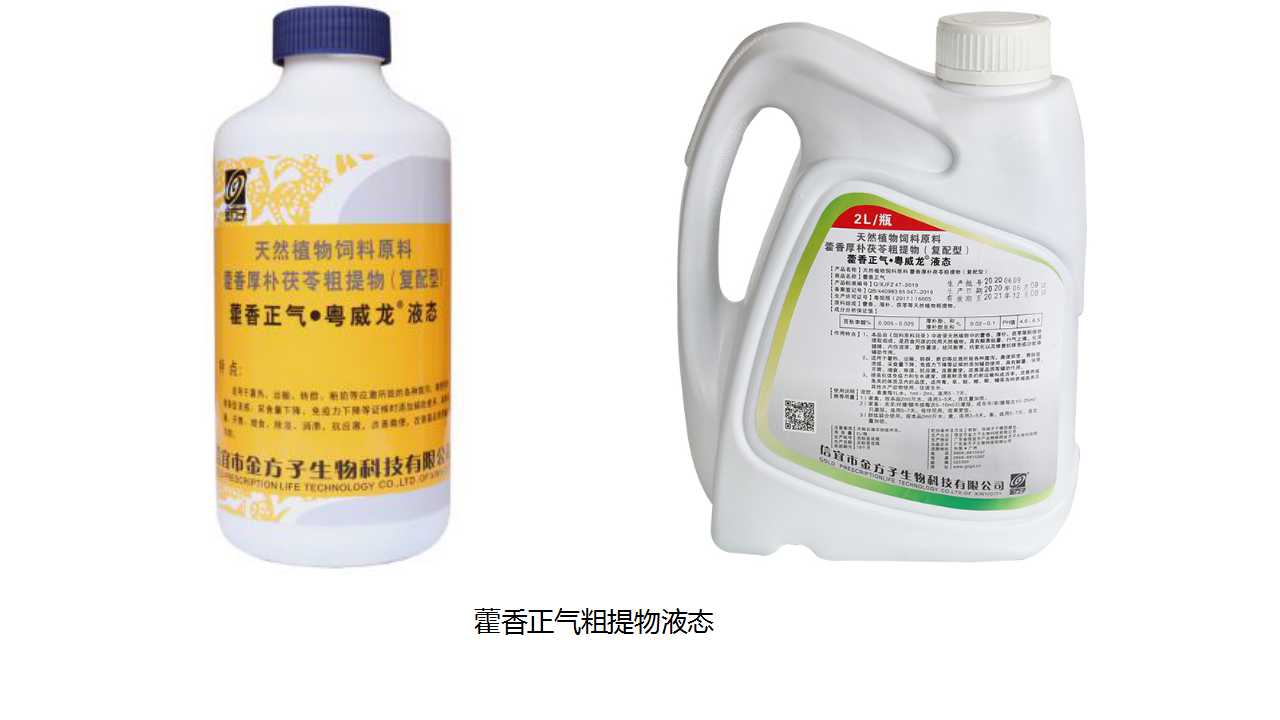 采用天然植物中的藿香、厚樸、茯苓等粗提物組成,是藥食同源的天然植物,具有解表祛暑、行氣止痛、化濕健脾、內(nèi)傷濕滯、夏傷暑濕、祛風(fēng)散寒、抗氧化以及修復(fù)機體免疫功能等輔助作用;在飼料中可長期添加,具有解暑、消滯、開胃、增食、除濕、抗應(yīng)激、改善糞便、改善養(yǎng)殖動物產(chǎn)品品質(zhì)和肉蛋奶產(chǎn)品風(fēng)味等。適用于畜禽因暑熱、運輸、轉(zhuǎn)群、斷奶等應(yīng)激所致各種腹瀉、糞便異常、腸胃型流感、采食量下降、免疫力下降等證候時添加輔助使用。尤其使用與畜禽因轉(zhuǎn)群所致“水土不服”諸證候,可以幫助提高機體免疫力和生長速度。
