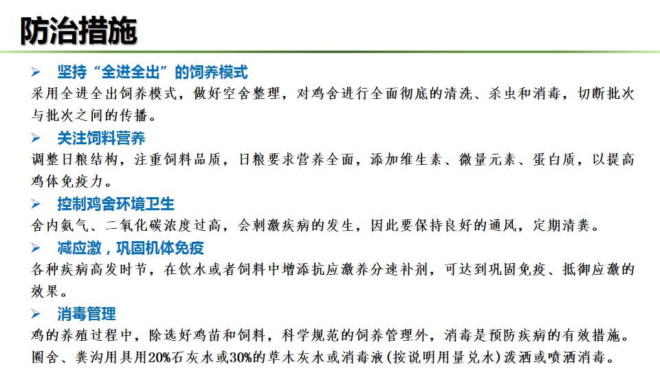 《禽病十問》,是由十四屆全國人大代表、華南農(nóng)業(yè)大學(xué)科學(xué)研究院院長、新農(nóng)村發(fā)展研究院常務(wù)副院長、鄉(xiāng)村振興研究院常務(wù)副院長,教授,博士生導(dǎo)師,廣東省高等學(xué)校“珠江學(xué)者”特聘教授、廣東省第十二次黨代會代表、廣東省家禽產(chǎn)業(yè)技術(shù)體系首席專家,謝青梅教授于2024年1月4日高山營銷大會上所作的主題報告,報告指出,當(dāng)前的禽病臨床情況復(fù)雜,呈多病原共感染和多病因影響,她分別從1肝臟、2糞便異常、3呼吸道、4胃腸道、5蛋品質(zhì)異常、6骨骼、7皮膚、8抗生素殘留、9頭面部異常、10腎臟等十種病證分別進(jìn)行了詳細(xì)的病因分析,分享了禽疾病的防治措施除了要做好生物安全、飼養(yǎng)管理、營養(yǎng)補(bǔ)給和疫苗免疫外,要科學(xué)使用高山中藥做好預(yù)防和保健,以減抗和全過程無抗養(yǎng)殖技術(shù)支撐,以實現(xiàn)優(yōu)質(zhì)肉蛋奶品為導(dǎo)向,以證論治和論防,是應(yīng)對和解決禽疾病的多病原共感染和多病因影響的好辦法。