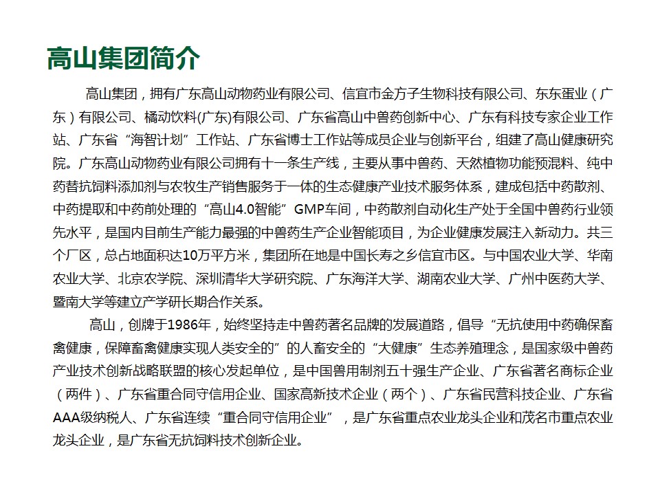 版權所有 © 中國·廣東高山動物藥業有限公司 GMP證號:(2022)獸藥GMP證字19010號