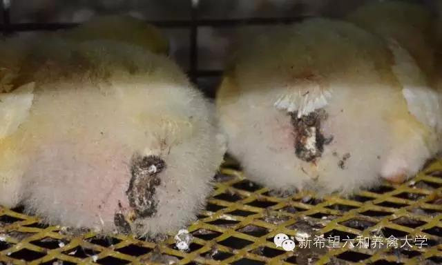 肉雛雞由于飼料消化不良、機體消化系統不發達造成的糊肛現象
