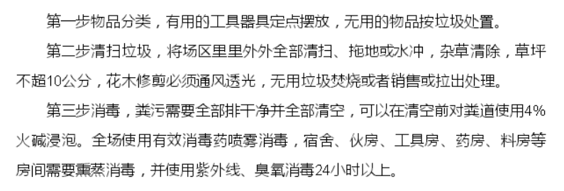 空場4個月以上:從上表看豬場受污染需要空場1個月,有死豬坑則要空場4個月以上。