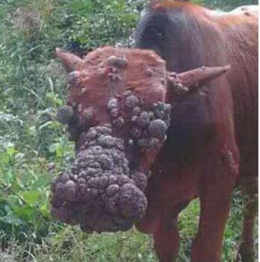 牛結節性皮膚病俗稱牛疙瘩病,是由痘病毒科、羊痘病毒屬的牛疙瘩皮膚病毒引起的以患牛發熱,皮膚、黏膜、器官表面廣泛性結節,淋巴結腫大,皮膚水腫為特征的傳染病。
