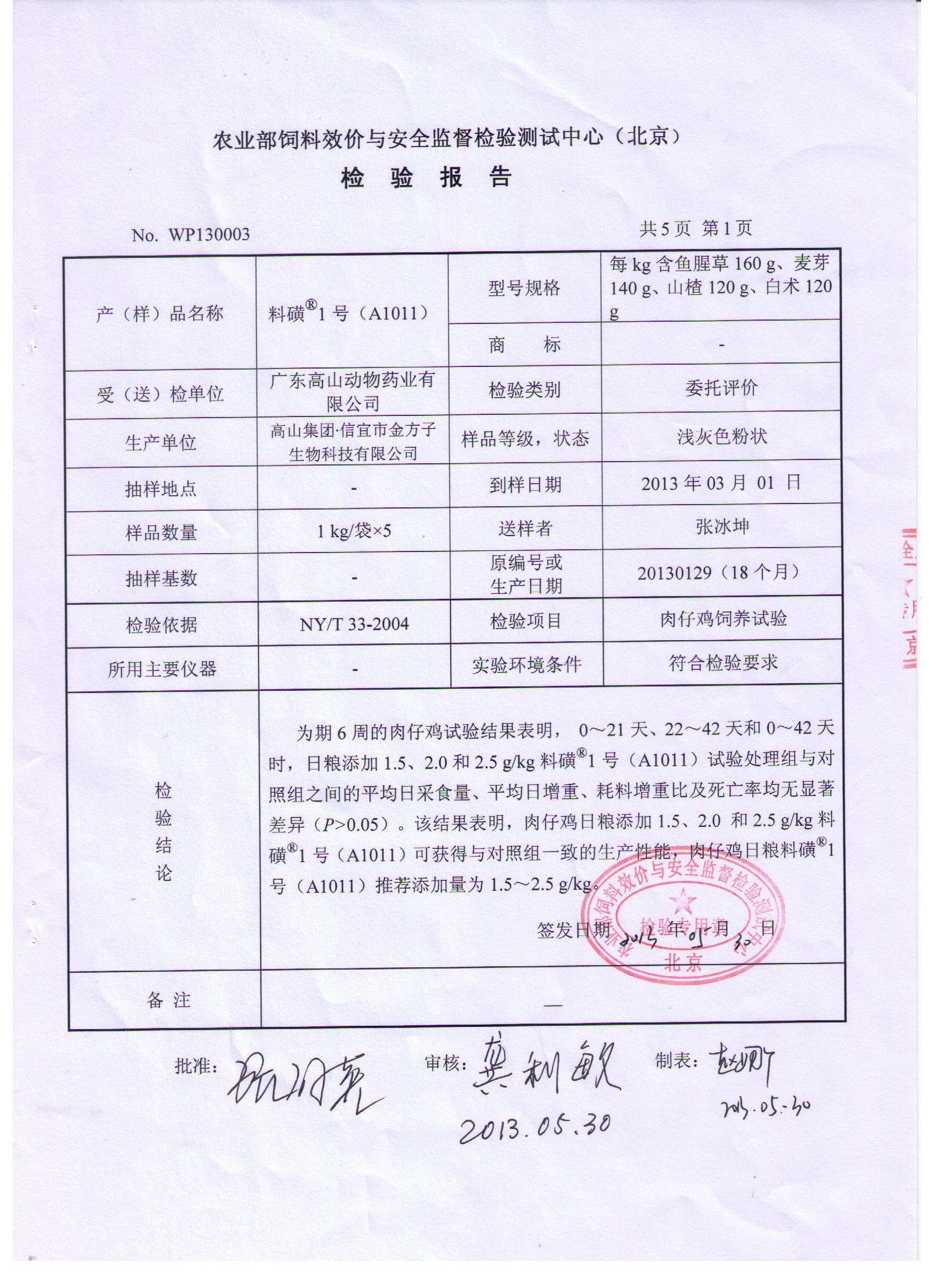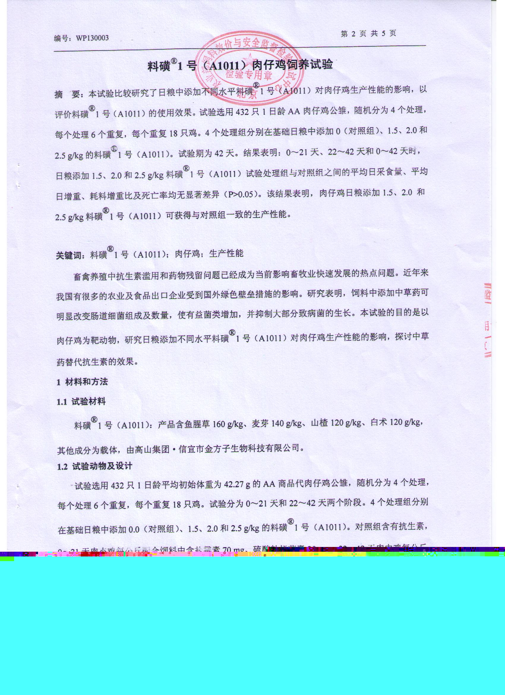 附:國家飼料工業中心2013年試驗報告