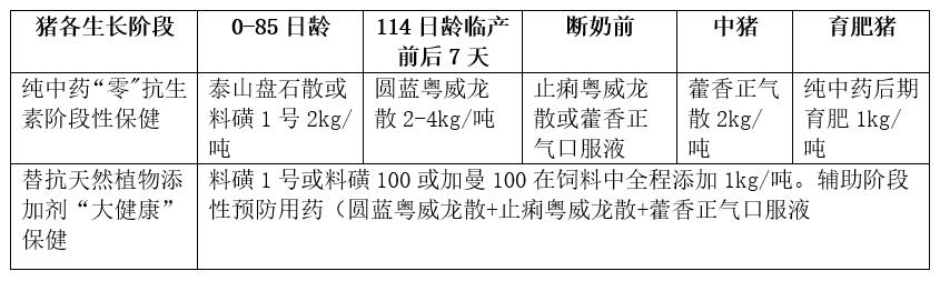 2)針對性提高母豬生產(chǎn)性能以及仔豬腹瀉等問題的純中藥經(jīng)典組合溯源保健方案:懷孕母豬給藥,按泰山盤石散或料磺1號按2kg/噸料,0-85日齡連續(xù)使用。按圓藍(lán)粵威龍散2kg/噸料,料磺1號2kg/噸料,每月定期使用5-7天。全程保健線參考如下: